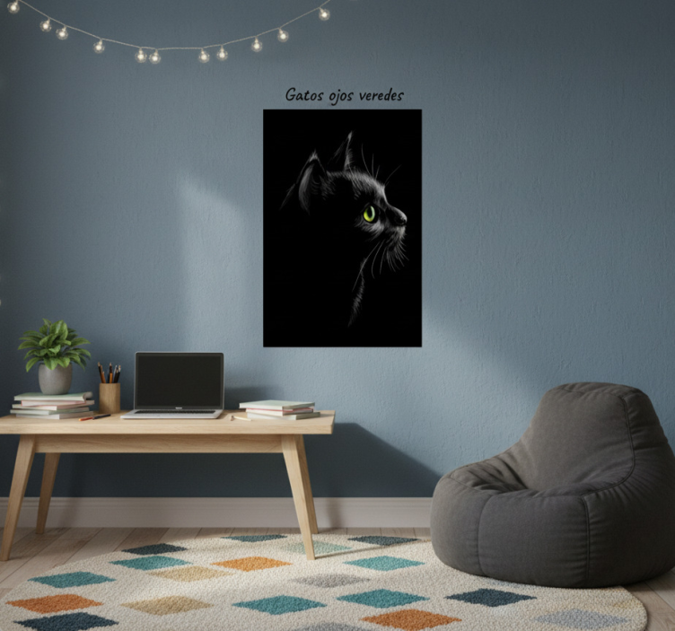 Aplicar el Poster para salón gatos de ojos verdes es fácil y divertido. La mejor opción es utilizar cinta adhesiva de doble cara en la parte posterior. También puedes optar por enmarcarlo para un acabado más elegante. Simplemente coloca las tiras en la parte posterior y sostén cada tira firmemente durante 10 segundos. Otra alternativa son las chinchetas o el blu-tack reutilizable, que se aplica como cinta adhesiva. ¡Haz que tu espacio brille con este encantador poster!