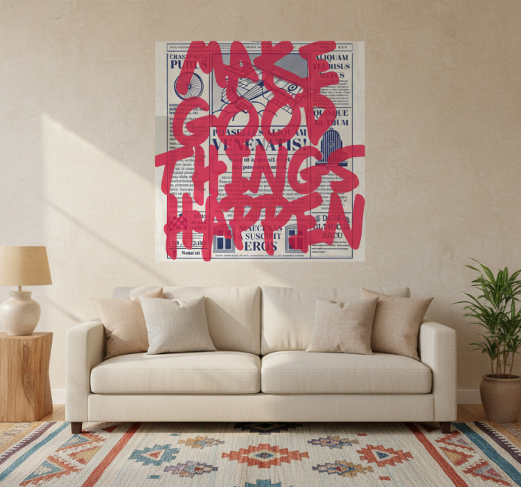 Para disfrutar de tu Poster salón haz que sucedan cosas buenas diseño retro, la mejor opción es utilizar cinta adhesiva de doble cara en la parte posterior. También puedes enmarcarlo, asegurando que luzca espectacular. Pega las tiras en la parte posterior y sostén cada tira firmemente durante 10 segundos. Otras alternativas son las chinchetas y el blu-tack reutilizable, que se aplica fácilmente como cinta adhesiva. ¡Hazlo tuyo y dale vida a tu espacio!