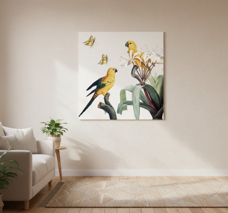 El Poster salón loros con flores amarillas y mariposas es una opción ideal para quienes desean agregar un toque de alegría y color a su entorno. Su diseño único no solo aporta un aire tropical, sino que también es una excelente manera de inspirar creatividad y tranquilidad en cualquier habitación. Con esta lámina decorativa, transformarás tu espacio en un refugio lleno de vida y armonía, invitando a la naturaleza a tu hogar.