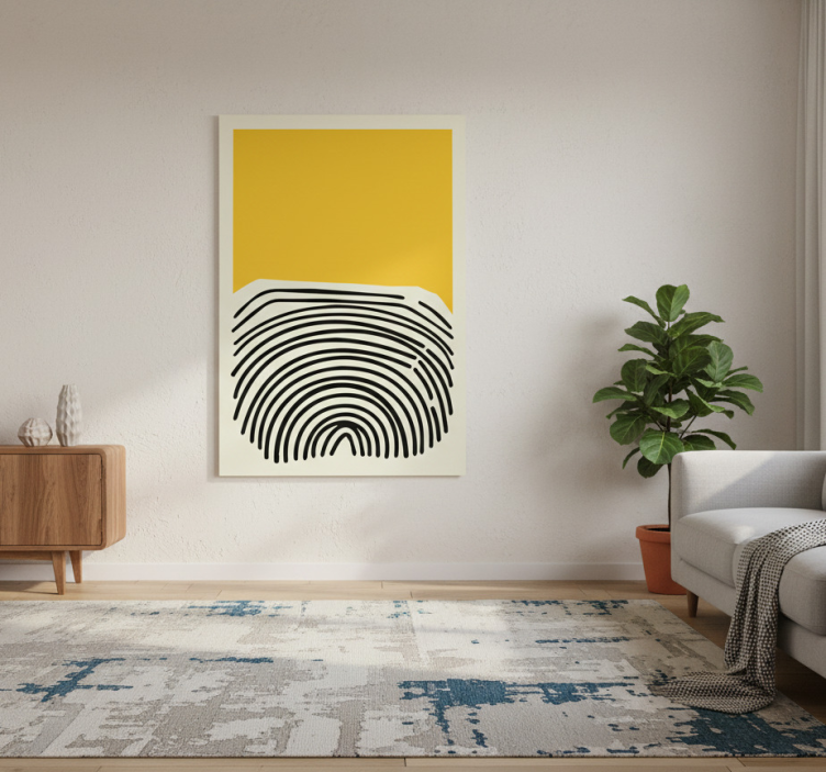 Poster salón pintura abstracta amarilla con líneas negras