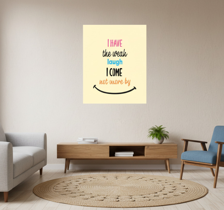 El Poster salón tengo la risa débil es la elección perfecta para quienes buscan inspiración y alegría en su decoración. Este poster no solo embellece tus paredes, sino que también invita a la risa y la felicidad. Ideal para cualquier rincón, su diseño cautivador y su mensaje positivo añaden calidez y personalidad a tu hogar, convirtiéndolo en un lugar donde cada día se celebra la vida. ¡Haz que tus espacios hablen de ti!