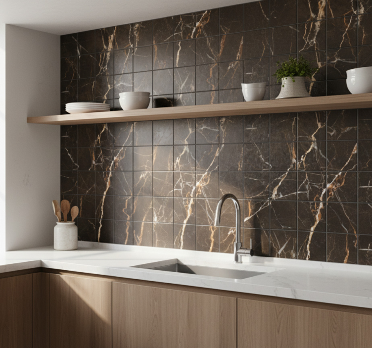 Azulejo adhesivo mármol negro y dorado