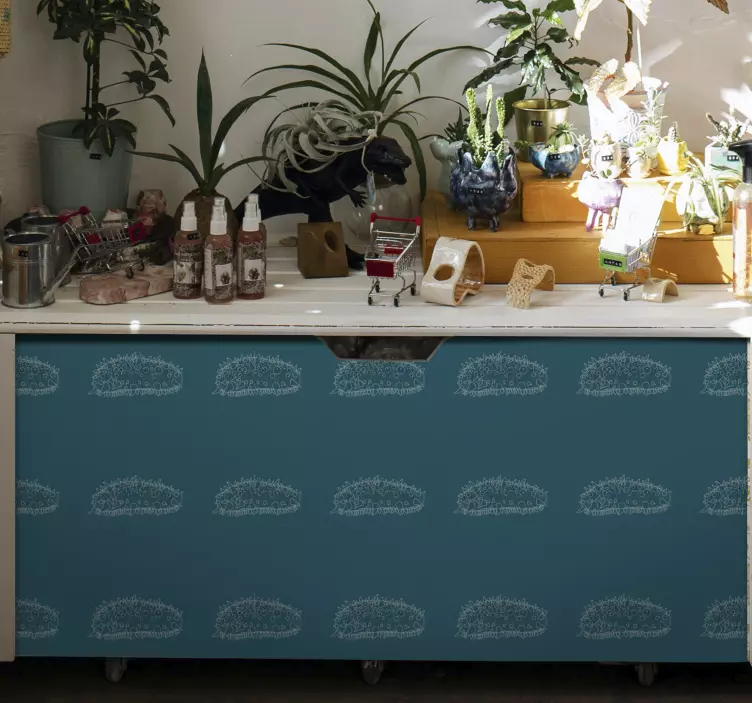 Descubre el azulejo adhesivo patrón de setos texturizados, un diseño que evoca la belleza de la naturaleza con un encantador estampado de pepino de mar. Este patrón en tonos azul es perfecto para realzar cualquier mueble o espacio, gracias a su estilo geométrico y texturizado. ¡Transmite frescura y elegancia a tus paredes!