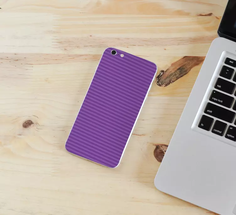 Aplicar la Calcomanía iPhone funda morada estriada es muy fácil. Simplemente limpia bien la superficie de tu iPhone para asegurar una buena adherencia, retira el respaldo de la calcomanía y colócala cuidadosamente sobre el dispositivo. ¡Disfruta de tu iPhone renovado en solo unos minutos!