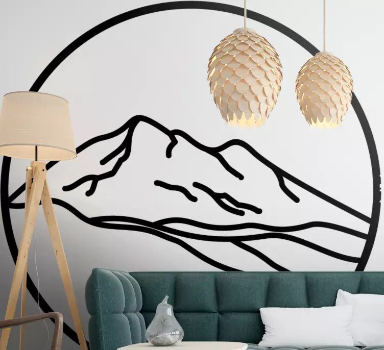 Obtén este diseño y cambia la apariencia de tu hogar con facilidad. Dale un toque natural a tus paredes y sorprende a tus invitados, amigos y familiares con este hermoso mural. Este producto es sencillo y se ve muy bien en cualquier habitación, ya sea en el dormitorio, baño, sala de estar o cocina. El diseño es un dibujo de contorno sólido de una cadena montañosa con un cielo que se llena de vida en tu pared.