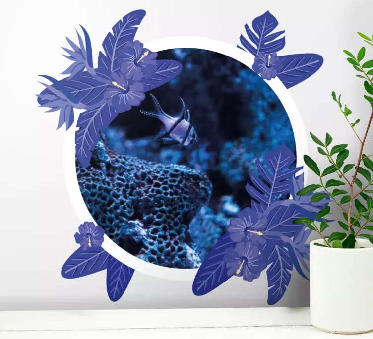 El Marco adhesivo escena de exploración submarina es una obra de arte decorativa que transforma cualquier espacio en un paraíso tropical. Con un diseño que incluye elementos florales, un marco ronda, y una paleta de colores que evoca el Océano, este marco captura la esencia de la naturaleza con sus vibrantes corales y peces. Las hojas y el profundo color azul crean una atmósfera de exploración y aventura que invita a sumergirse en un mundo submarino lleno de belleza.