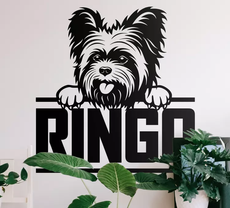 Este precioso perro de raza Yorkshire está espiando detrás de la vinilo adhesivo del perro para la vinilo pared, coche, ordenador portátil. Personaliza el nombre de tu perro en el campo que se proporciona y se imprimirá en tu pedido.