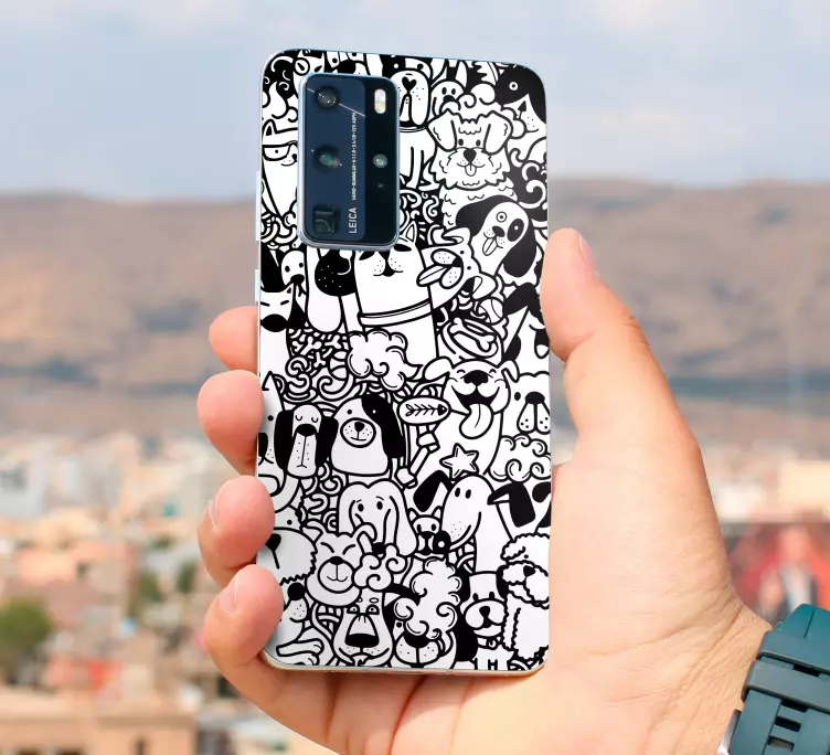 ¡Dale un toque único a tu Huawei con nuestra Pegatina Huawei motivos de perros divertidos! Este diseño gráfico presenta adorables perros y cachorros en un patrón gracioso en blanco y negro, ideal para personalizar tu teléfono móvil. Con un estilo divertido y encantador, esta pegatina transformará tu dispositivo en una auténtica obra de arte.