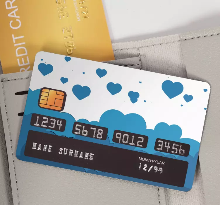 Descubre nuestro Sticker para tarjeta patrón de nubes con corazones, un diseño gráfico encantador que combina corazones juguetones en un fondo de nubes azules. Este adhesivo no solo decora, sino que también añade un toque de amor a tu tarjeta de crédito, convirtiéndola en un accesorio único y divertido.