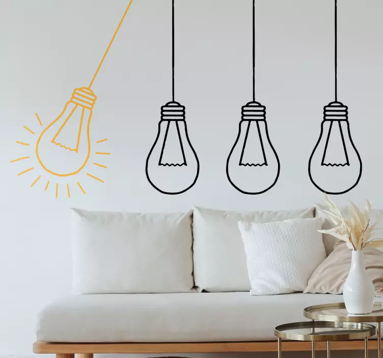Descubre la belleza de nuestro vinilo bombillas colgantes, un diseño cautivador que combina un estilo nórdico y minimalista. Este producto presenta un dibujo encantador de bombillas que iluminará cualquier espacio interior, brindando un toque hogareño y acogedor. Con su contorno delicado y su ilustración única, este vinilo es perfecto para quienes buscan añadir un elemento artístico a su decoración.