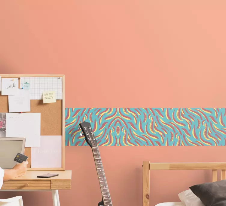 El vinilo curvas abstractas vibrantes es una obra de arte visual que transforma cualquier espacio. Con un diseño que incluye cenefa, frontera, rayas, y un patrón de ondas abstractas, este estampado es realmente vistoso. Su diseño dinámico y colorido atraerá todas las miradas, convirtiendo tus paredes en un lienzo lleno de vida y energía.
