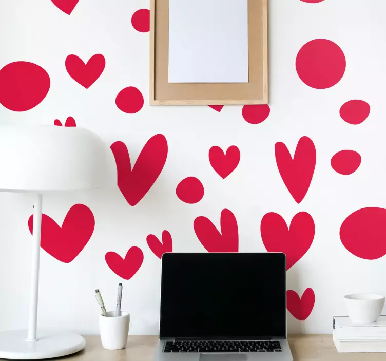 El Vinilo de amor formas de corazones encantadoras es una pieza decorativa que captura la esencia del romance a través de un diseño lleno de corazones, topos y garabatos juguetones. Este vistoso vinilo es perfecto para añadir un toque encantador y decorativo a cualquier espacio, transformando rápidamente tus paredes en un refugio de amor y alegría.