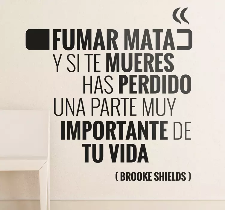 Referencia: A8452Vinilos de humor con diseño exclusivo disponibles en gran variedad de tamaños y más de cincuenta colores diferentes. Una manera original de decorar cualquier estancia de tu casa y dotarla de un toque gracioso que sorprenderá a tus invitados con la hilarante cita "fumar mata y si te mueres has perdido una parte muy importante de tu vida".