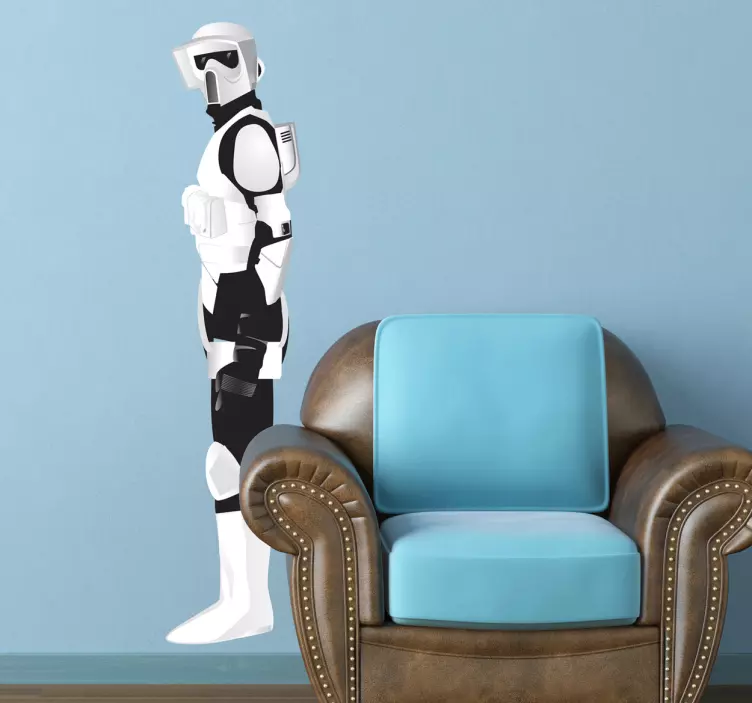 En esta pegatina, disponible en la medida que necesites, aparece una representación de un soldado que, subido en su speeder bike recorre planetas para informar a las tropas imperiales de posibles peligros y amenazas.