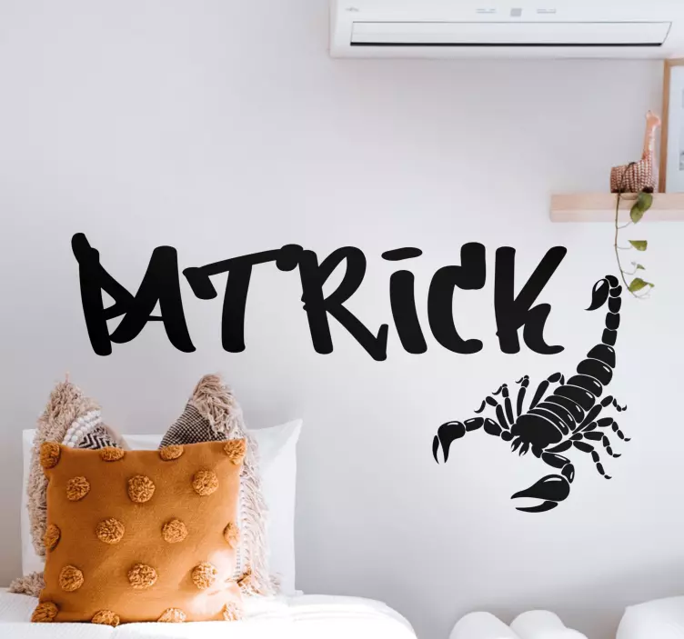 Referencia: A49594Un diseño personalizable llamativo que presenta un escorpión audaz junto a un nombre impactante. Este diseño combina personalidad y simbolismo, creando una declaración única en cualquier espacio. Perfecto para quienes buscan agregar un toque de individualidad a su entorno.