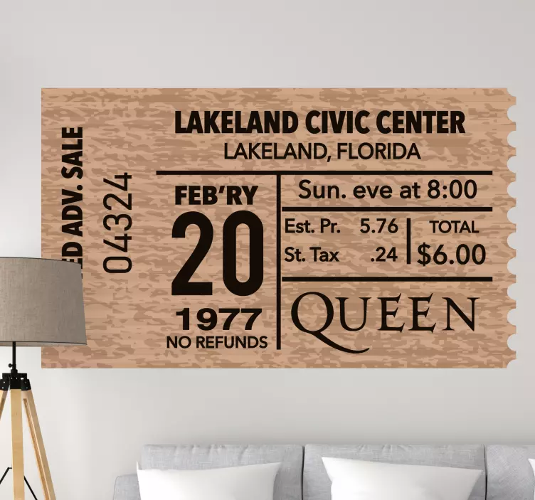 Referencia: A49733Un boleto vintage del Lakeland Civic Center, que presenta un evento de Queen el 20 de febrero de 1977. Este diseño resalta la importancia histórica de los eventos de música en vivo, mostrando detalles del boleto como ubicación, fecha y precios, atrayendo a entusiastas de la música y coleccionistas.