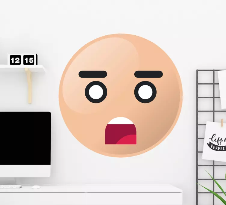El vinilo expresión facial asombrada es un diseño vibrante que captura una reacción de sorpresa en su máxima expresión. Con emoticonos que reflejan un rostro conmocionado, este producto destaca por su capacidad de transmitir emociones a través de caras y caracteres. La expresión de asombro se convierte en una obra de arte que transformará cualquier espacio, creando un ambiente lleno de vida y dinamismo.