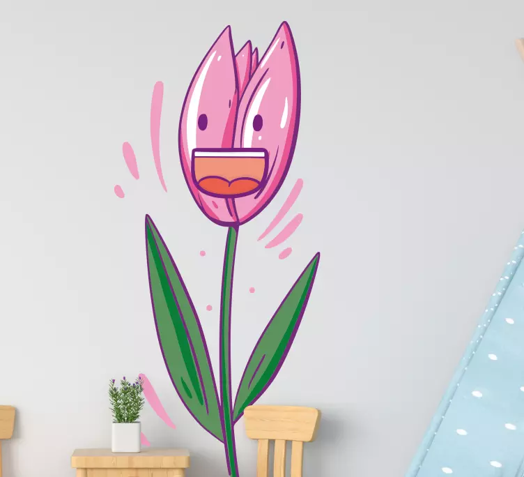 Descubre la alegría que aporta nuestro Vinilo flores diseño de tulipán feliz, una ilustración vibrante que captura la esencia de la felicidad. Este diseño presenta un tulipán juguetón, gritando de emoción, lleno de colores que resaltan su carácter divertido. Ideal para dar un toque fresco y alegre a cualquier espacio, este vinilo es perfecto para quienes buscan una decoración única y llena de vida.