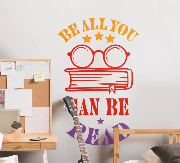 Referencia: A48091Una declaración inspiradora que enfatiza la importancia de reading. Destacando un libro con gafas y estrellas, motiva a las personas a abrazar la alfabetización y el conocimiento, reflejando una actitud positiva hacia la educación.