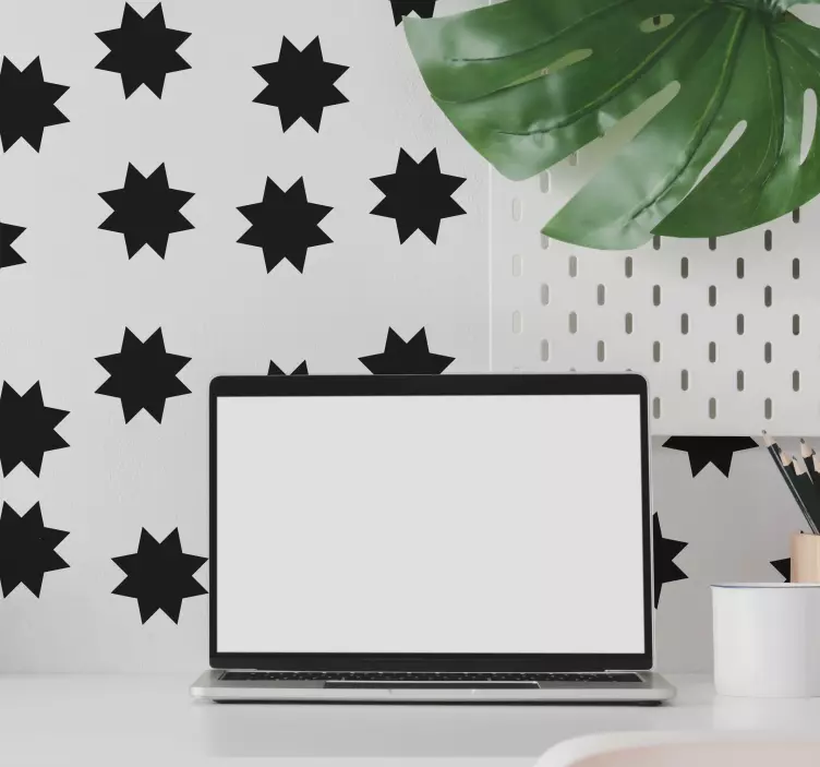 Referencia: A47990Con una serie de formas de estrellas negras, este diseño añade un toque dinámico a cualquier espacio. Las formas geométricas crean un contraste juguetón contra un fondo claro, realzando el interés visual mientras mantienen una estética contemporánea adecuada para diversos entornos.