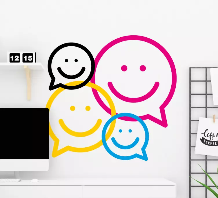 ¡Descubre la alegría de la comunicación visual con nuestro Vinilo iconos de caritas sonrientes! Este encantador diseño presenta burbujas de diálogo llenas de caras sonrientes que invitan a la felicidad. Con emoticonos vibrantes y dibujos animados, es un elemento decorativo que no solo es vistoso, sino que también irradia alegría en cualquier espacio. Ideal para crear un ambiente positivo y acogedor, este vinilo es perfecto para quienes aman expresarse de manera divertida y colorida.