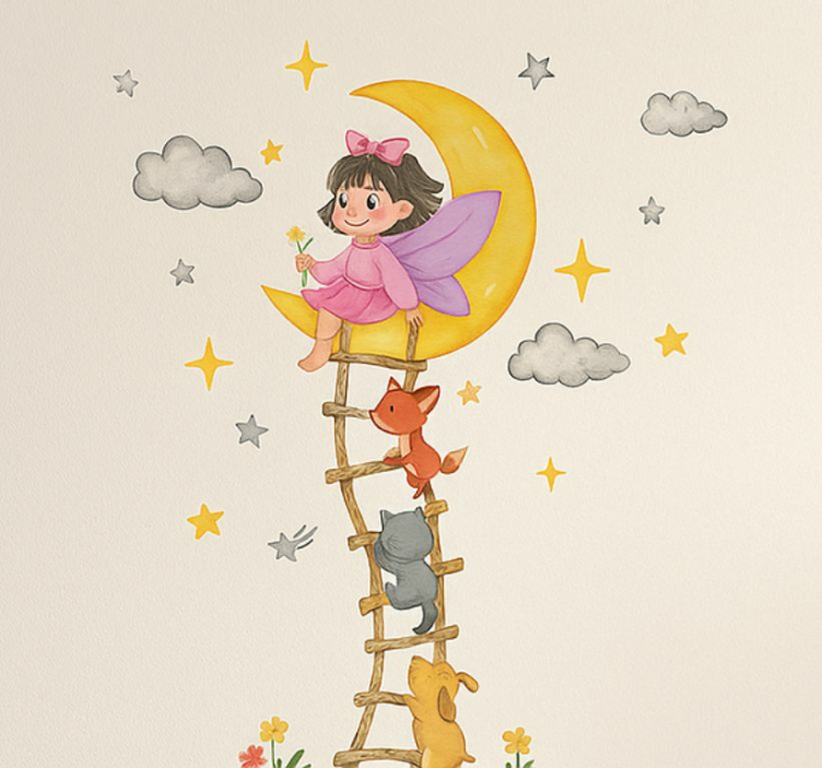 Referencia: A54266Descubre la magia de la vinilo infantil calcomanía de pared chica luna, una divertida decoración que transformará cualquier habitación en un lugar lleno de sueños y fantasía. Este hermoso diseño presenta una encantadora luna, rodeada de estrellas brillantes y suaves nubes, creando un ambiente acogedor y alegre para los más pequeños. Con un acabado semimate y una alta intensidad de color, cada detalle resalta con esplendor, haciendo que la habitación de tu niño cobre vida.