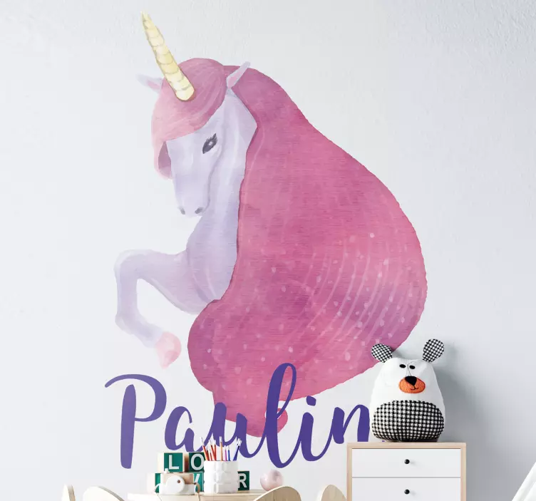 Descubre un mundo mágico con nuestro Vinilo infantil para pared diseño de unicornio. Este encantador diseño presenta un unicornio en acuarela, lleno de colores vistosos y juguetones, que sin duda capturará la atención de los más pequeños. Además, puedes personalizarlo con el nombre de tu hijo, haciendo de este vinilo un elemento único y especial para su habitación. Con su estilo alegre y lleno de vida, transformará cualquier espacio en un rincón de ensueño.
