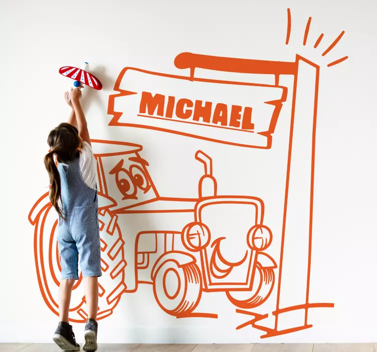 Transforma la habitación de tus pequeños con nuestro vinilo infantil para pared escena de tractor divertida. Este diseño, dibujado a mano, presenta un encantador tractor que hará volar la imaginación de los niños. Con un estilo caprichoso y divertido, este vinilo es completamente personalizable, permitiendo añadir un texto único que refleje la personalidad de tu hijo. ¡Es una forma maravillosa de dar vida a cualquier espacio infantil!