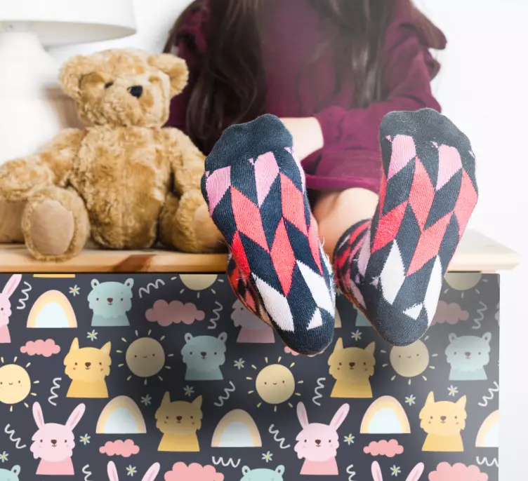 Descubre la magia de nuestro vinilo infantil para pared estilos de criaturas adorables, un diseño vibrante que incluye encantadores animales, un arcoíris juguetón y patrones caprichosos que llenarán de alegría cualquier espacio. Con un estampado divertido y vistoso, este vinilo es perfecto para decorar muebles y habitaciones de niños, convirtiendo cada rincón en un mundo de dibujos animados lleno de vida y color.