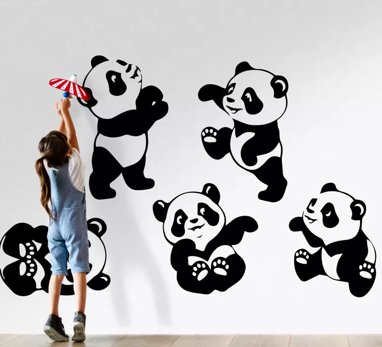 Vinilo infantil para pared figuras de panda caprichosas