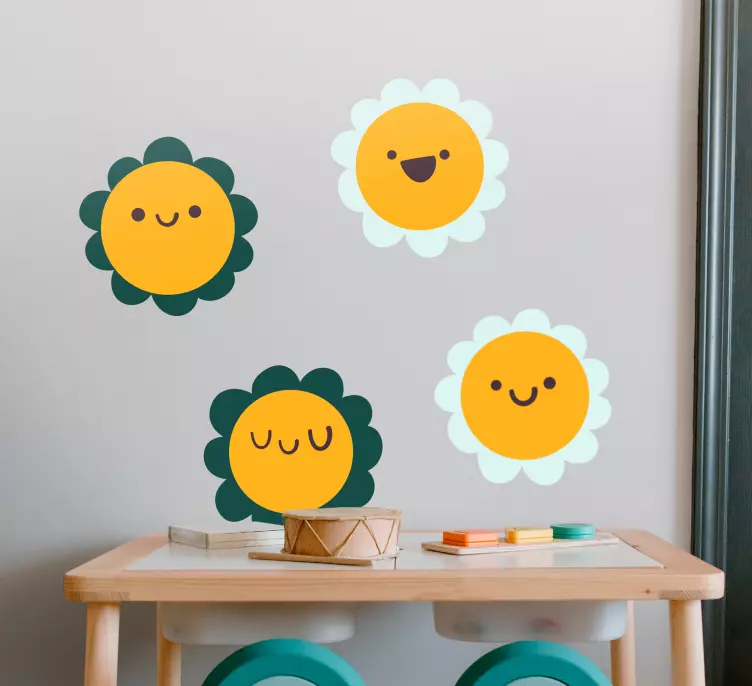 Referencia: A48406Diseños brillantes y alegres que presentan personajes florales felices. Cada flor tiene una expresión única, aportando un sentido de diversión y alegría a cualquier espacio. Ideal para entornos infantiles, estos elementos potencian la creatividad y crean una atmósfera cálida.