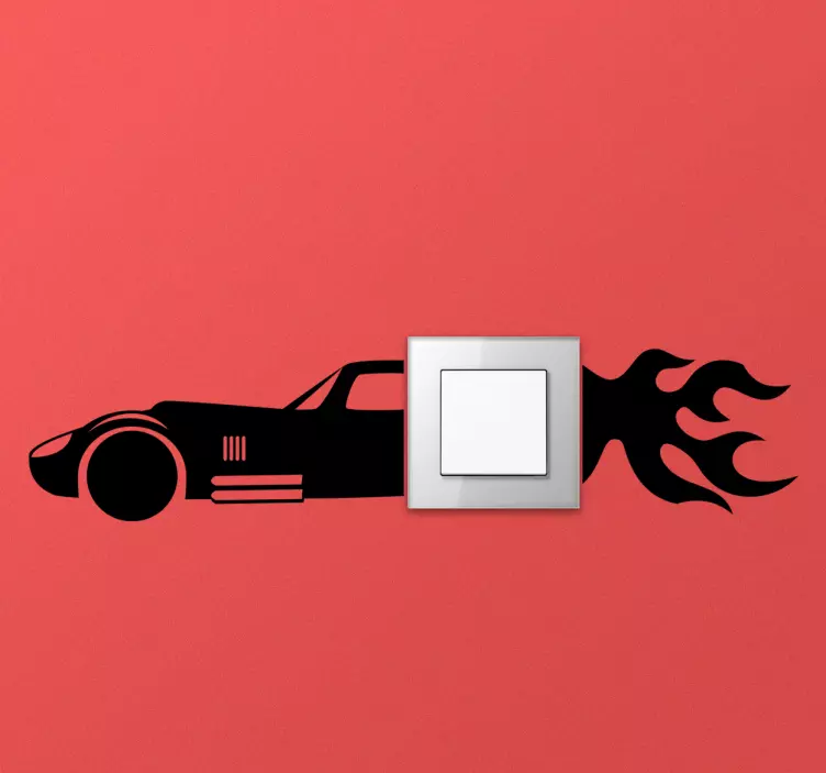 Transforma la apariencia de tu hogar con nuestro vinilo interruptor llamas de coche de carreras. Este diseño vibrante presenta la silueta de un carro conduciendo a toda velocidad, rodeado de llamas que evocan la emoción de las carreras. Con un fondo negro, este vinilo añade un toque audaz y dinámico a cualquier ambiente, ideal para los amantes de la velocidad y la adrenalina.