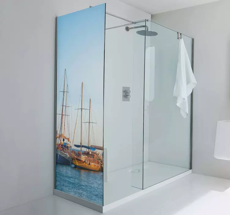 Descubre la belleza marina con nuestro vinilo mampara baño escena de veleros. Este espectacular diseño presenta una escena serena de barcos navegando en un puerto, donde el agua refleja la luz del sol y los marineros disfrutan de la navegación. Con un estilo marítimo y náutico, este vinilo transformará tu ducha en un rincón de tranquilidad, evocando la esencia del mar y el transporte en alta mar.