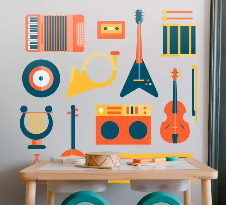 Descubre la magia del arte decorativo con nuestro Vinilo música instrumentos musicales vibrantes. Este diseño único, lleno de música y instrumentos, transforma cualquier espacio en un lugar lleno de energía y creatividad. Con su estilo vistoso y decorativo, es perfecto para los amantes de la música que buscan dar un toque especial a sus paredes. ¡Un verdadero deleite para los sentidos!