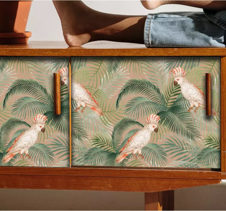 Descubre el Vinilo naturaleza loros y palmeras tropicales, un diseño vibrante que evoca la exuberancia de la selva. Con hojas verdes, loros coloridos y plumas que capturan la esencia del trópico, este vinilo es perfecto para cualquier mueble o espacio que desees transformar. La combinación de palmas y follaje crea una atmósfera de serenidad y alegría, ideal para aquellos que aman la naturaleza y desean llevar un pedazo de ella a su hogar.