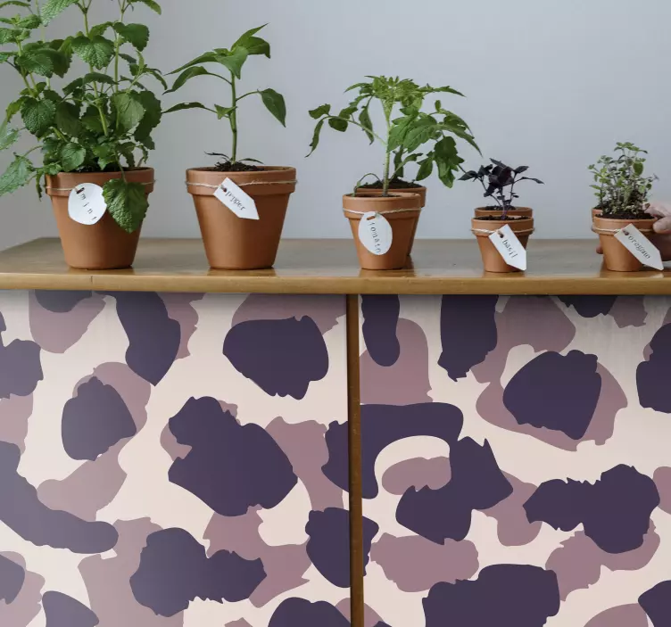 El vinilo ornamental estampado de leopardo es una obra maestra de diseño que combina un elegante patrón de camuflaje en tonos púrpura, lila y morado. Inspirado en la naturaleza, este estampado abstracto y moderno aporta una huella animal única a cualquier espacio. Su apariencia cautivadora hará que tus muebles luzcan con un toque distintivo y lleno de carácter.