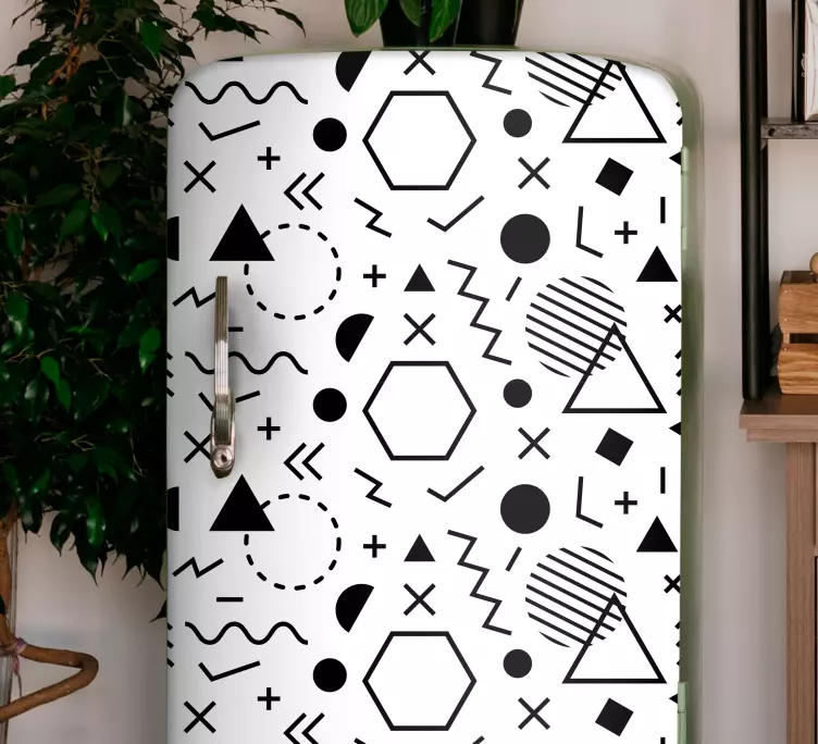 Descubre el encantador vinilo ornamental formas abstractas bold, una pieza gráfica que transforma cualquier espacio con su diseño geométrico y minimalista. Este vinilo ornamental presenta un elegante patrón en blanco y negro, ideal para realzar la apariencia de refrigeradores, neveras, frigoríficos o heladeras. Su estilo moderno y abstracto aportará un toque único y sofisticado a tu hogar o lugar de trabajo.