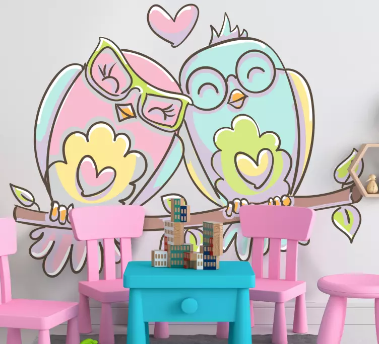 El vinilo pájaro aves de amor adorables es una encantadora ilustración que captura la esencia del amor y la felicidad. Con un diseño que incluye un búho y su pareja, estas aves se presentan en suaves tonos rosados y azules, llenando cualquier espacio de alegría y ternura. Ideal para quienes buscan un toque especial en su decoración, este vinilo refleja la belleza de una conexión amorosa entre las aves, creando un ambiente acogedor y feliz.