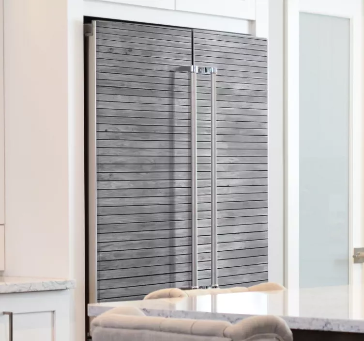 Transforma tu cocina con el Vinilo para heladera apariencia de madera texturizada, que evoca la calidez de la madera gris con una atractiva disposición de tablones en horizontal. Este diseño moderno no solo aportará un toque estético a tu refrigerador o nevera, sino que además brindará una textura envolvente que hará que tu heladera se integre perfectamente en el ambiente de tu cocina.