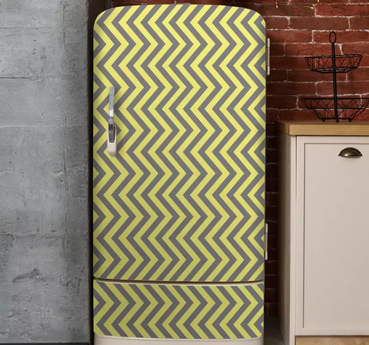 Transforma tu refrigerador en una obra de arte con nuestro Vinilo para heladera diseño chevron. Este diseño cautivador presenta un patrón de rayas y zig-zag que se combina en un estampado vistoso y moderno, ideal para la decoración del hogar. Dale un toque fresco y vibrante a tu heladera o frigorífico y haz que destaque en cualquier cocina.