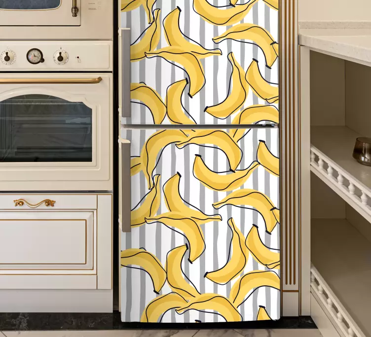¡Transforma tu cocina con el Vinilo para heladera estilo motivo banana! Este diseño divertido y juguetón presenta un patrón de plátanos en vibrantes tonos amarillos, ideal para darle un toque fresco a tu refrigerador. La ilustración de frutas aporta un aire alegre a tu frigorífico, convirtiéndolo en un elemento decorativo que llama la atención mientras mantiene la funcionalidad de tu heladera.