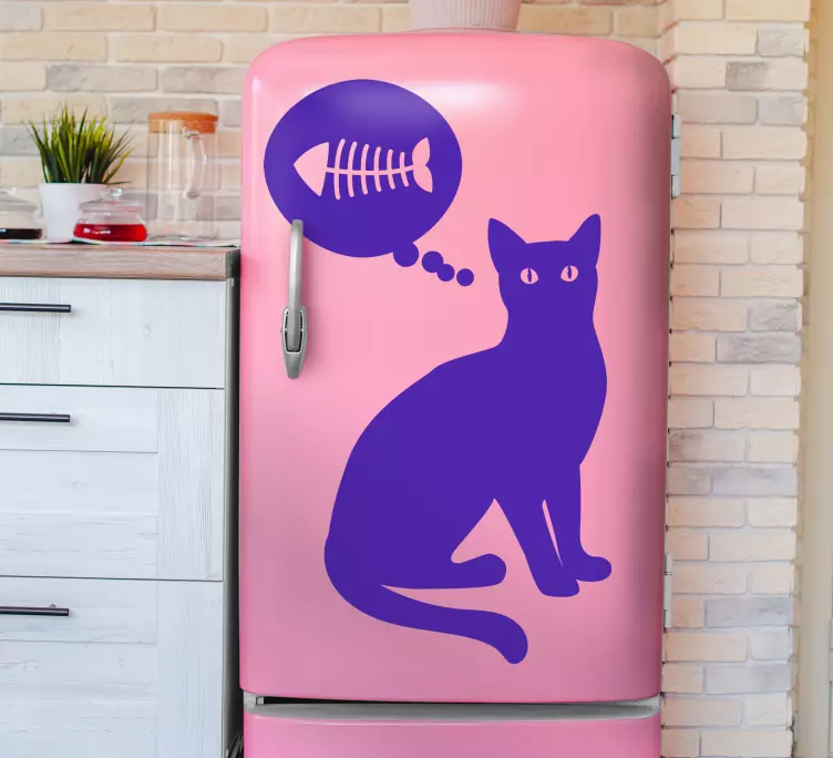 Descubre el encantador vinilo para heladera silueta de gato pensativo, un diseño que captura la esencia de un gato en plena reflexión. Con su elegancia, esta silueta graciosa presenta a un gato pensando, acompañado de una burbuja de pensamiento que insinúa un delicioso pescado. Ideal para quienes aman a sus mascotas y quieren añadir un toque divertido a su cocina. La forma espina del gato lo hace aún más atractivo, convirtiéndose en una pieza decorativa única.