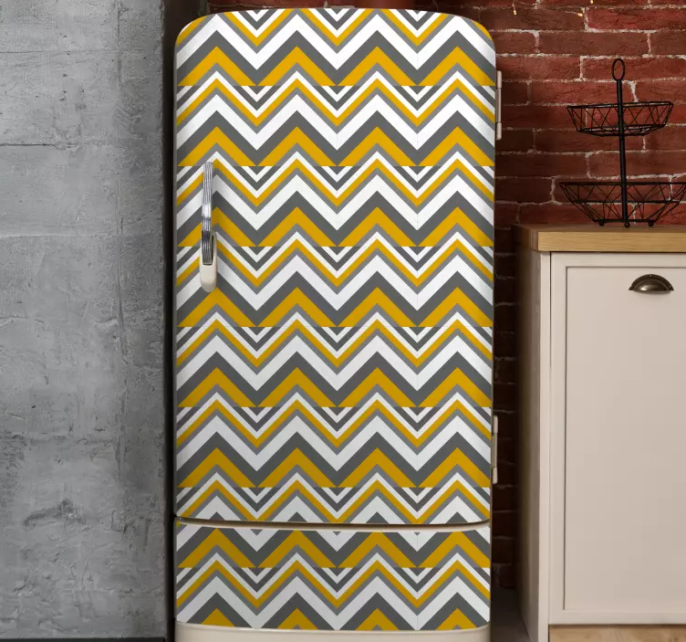 Descubre la magia del vinilo para mueble diseño chevron, un producto que transforma cualquier espacio con su elegante diseño nórdico. Este vinilo presenta un atractivo patrón de zigzag en tonos amarillos y grises, que evoca una sensación moderna y vibrante. Ideal para decorar tu refrigerador, nevera, frigorífico o heladera, este estampado de triángulos aporta un toque fresco y contemporáneo a tu hogar.
