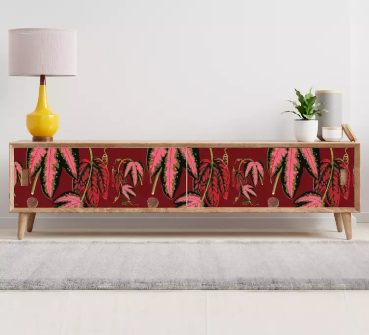 Descubre la elegancia natural de nuestro Vinilo para mueble motivo de hojas lujosas, un diseño que transforma cualquier espacio en un santuario de frescura y vitalidad. Con un hermoso patrón floral que incluye inspiraciones de maranta, este vinilo presenta vibrantes tonos de rojo, verde y rosado, creando un acento perfecto para tus muebles. La ilustración de la flora es ideal para quienes buscan un estilo que combine modernidad y naturaleza, aportando un toque natural a la decoración de su hogar.