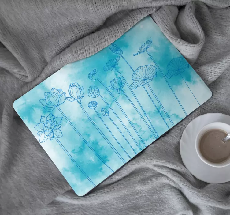 Descubre la belleza de la flor de loto en una impresionante obra de arte diseñada específicamente para adornar tu ordenador portátil. Este vinilo para portátil presenta un cautivador diseño en tonos azul con una técnica de acuarela que resalta la naturaleza y la esencia floral de las flores. Con su aire fresco y relajante, este vinilo transforma tu dispositivo en un verdadero deleite visual, llevándote a un mundo donde la elegancia y la serenidad se entrelazan.