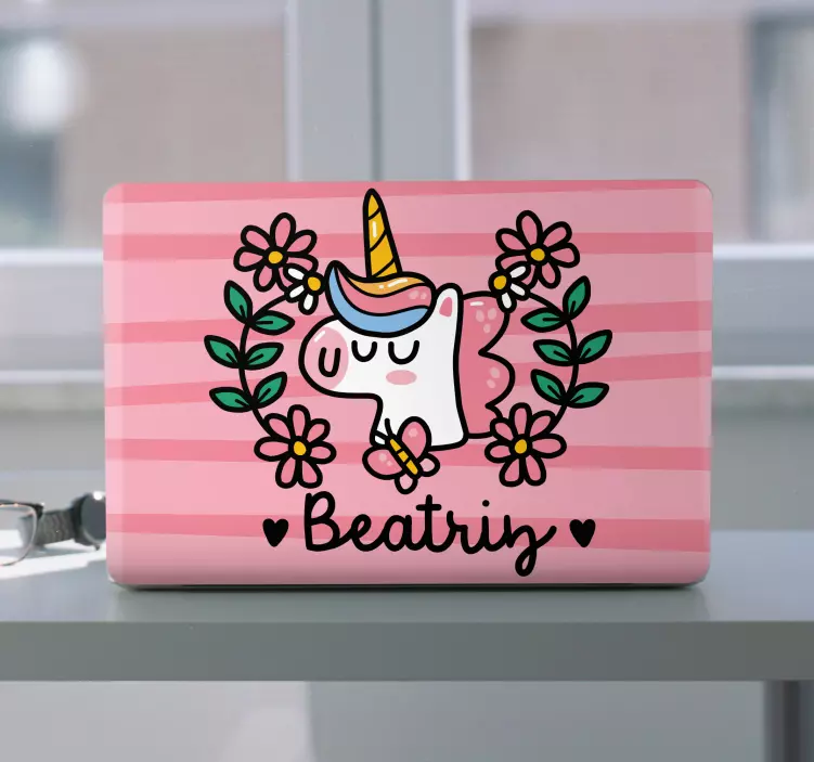 Vinilo para portátil diseño floral de unicornio