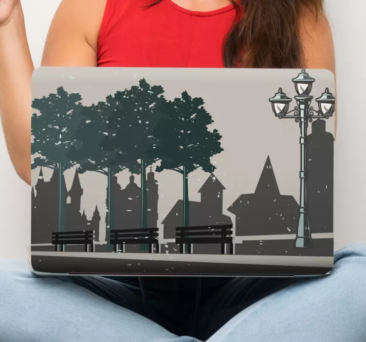 Descubre un mundo lleno de nostalgia y estilo con nuestro vinilo para portátil escena de parque urbano. Este diseño vibrante evoca la estética de los años 70, donde las silhuetas de árboles y postes de luz se entrelazan en un hermoso paisaje urbano. Imagina trabajar en tu ordenador portátil mientras te rodeas de una calle adornada con bancos y un ambiente que respira vida y serenidad. Cada detalle está diseñado para transportar a tu espacio personal a un parque encantador, donde la belleza de lo urbano se encuentra con la paz de la naturaleza.