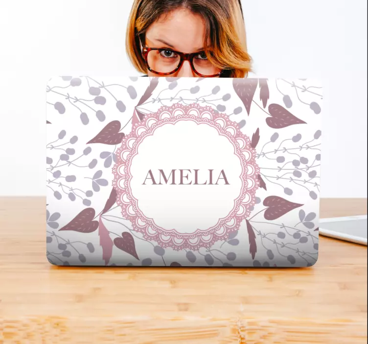 Descubre la elegancia y el estilo que aporta nuestro Vinilo para portátil motivo botánico personalizado. Este diseño exclusivo presenta un hermoso patrón floral que incluye hojas y corazones en un fondo armonioso. Perfecto para darle un toque personal a tu portátil, cada detalle está pensado para transformar tu ordenador en una pieza única y artística, haciendo que tu espacio de trabajo sea más acogedor y bello.