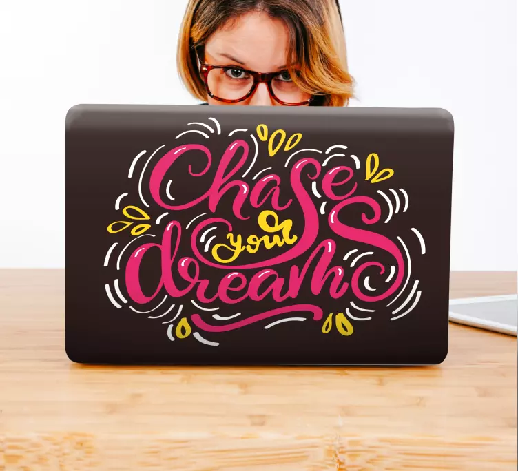 Descubre el vinilo para portátil persigue tus sueños, un diseño moderno y vistoso que transforma tu ordenador portátil en un espacio inspirador. Con una tipografía motivacional, este vinilo hará que cada vez que abras tu portátil, sientas la energía positiva de perseguir tus sueños. Su estilo vibrante y contemporáneo se adapta perfectamente a cualquier entorno, brindando un toque personal a tu equipo.