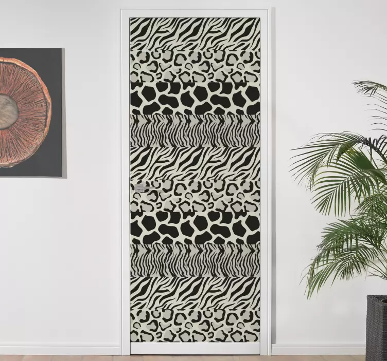 El vinilo para puerta estampado de piel de animal es una auténtica obra de arte que transforma cualquier puerta en un atractivo visual. Con un diseño en blanco y negro que destaca la huella animal del leopardo, este adhesivo presenta patrones fascinantes que evocan la belleza del reino animal. Además, su estampado en negro y blanco, que incluye elementos similares a la cebra, añade un toque de elegancia y modernidad a tu hogar.
